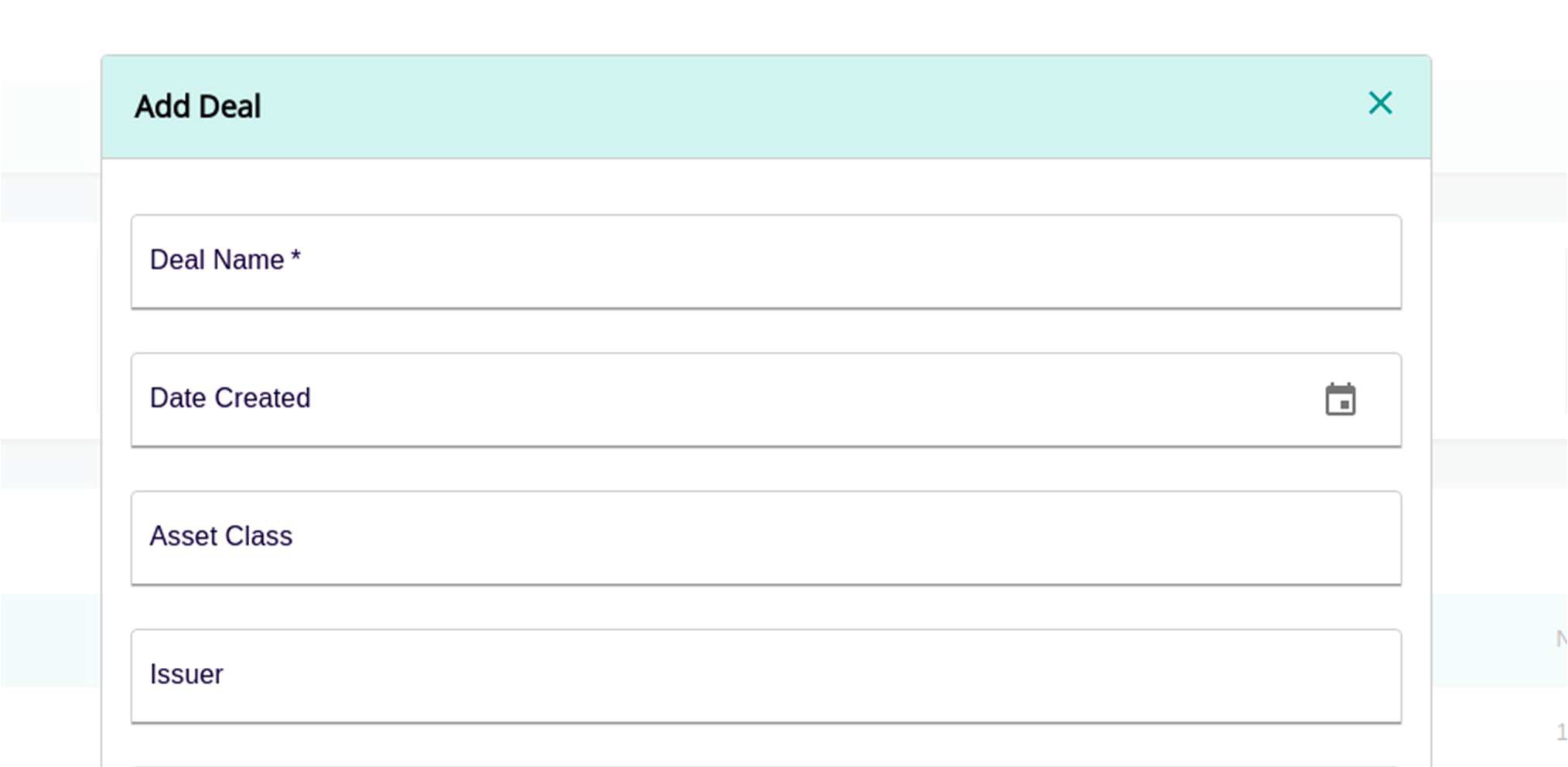 INPUTS INPUTS TO BE GIVEN Deal Name Deal name Field Name Field name Field Standard Name Field standard name Category Loan category Display in UI Yes or No Figure: 16- Add Fields Adding a New Field: ● Click on the Add Field icon. ● Clicking Add Field ...