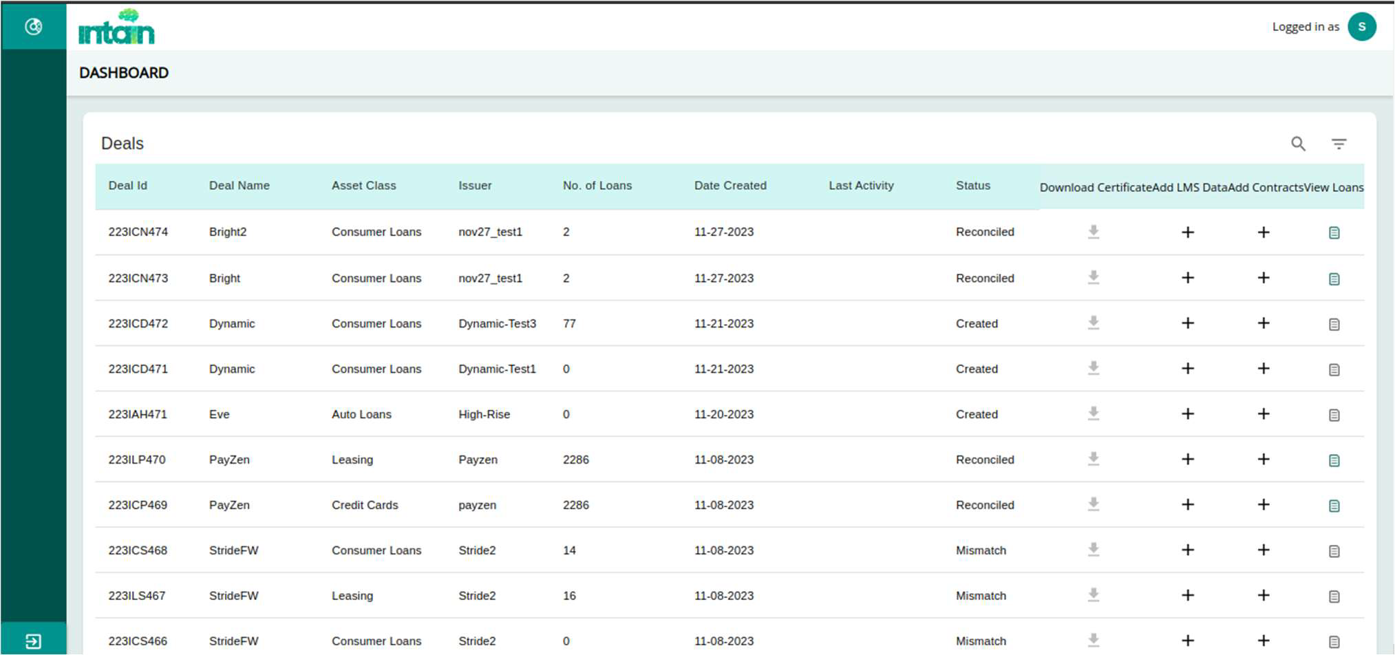 a Deal is created, the initial status is "Created".
