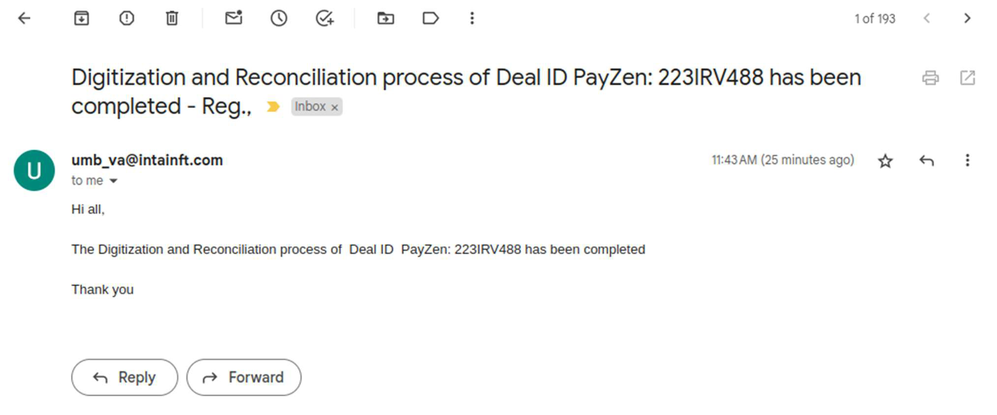 Processor receives a Reconciled status email.