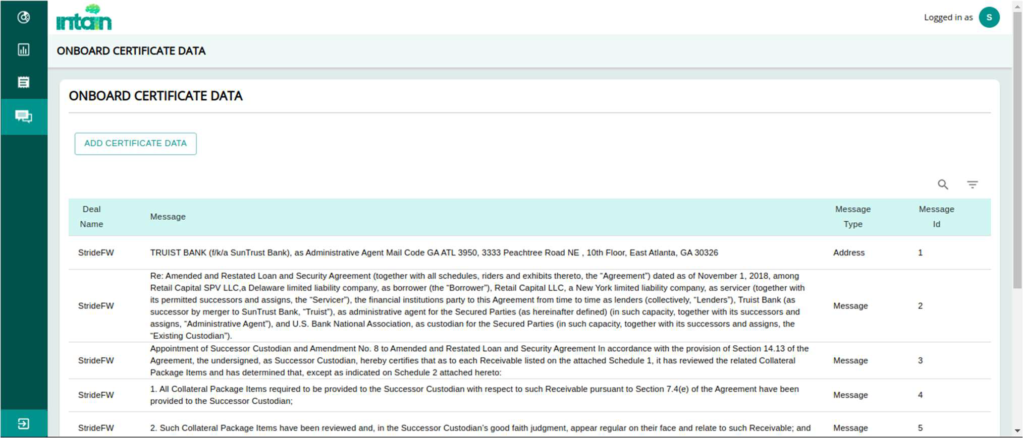 Figure: 18- Add Certificate Data Adding Certificate Data: ● Click on the Add Certificate Data button. ● A pop-up window will appear, allowing the admin to enter the following details: ○ Deal Name ○ Certificate Message ○ Message Type ● Clicking Add ...