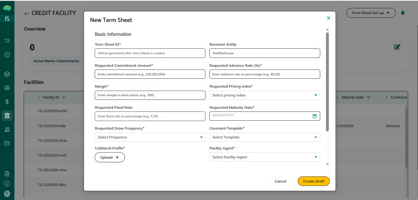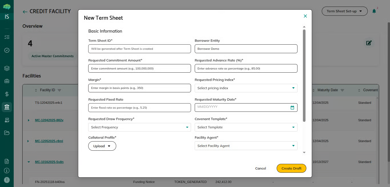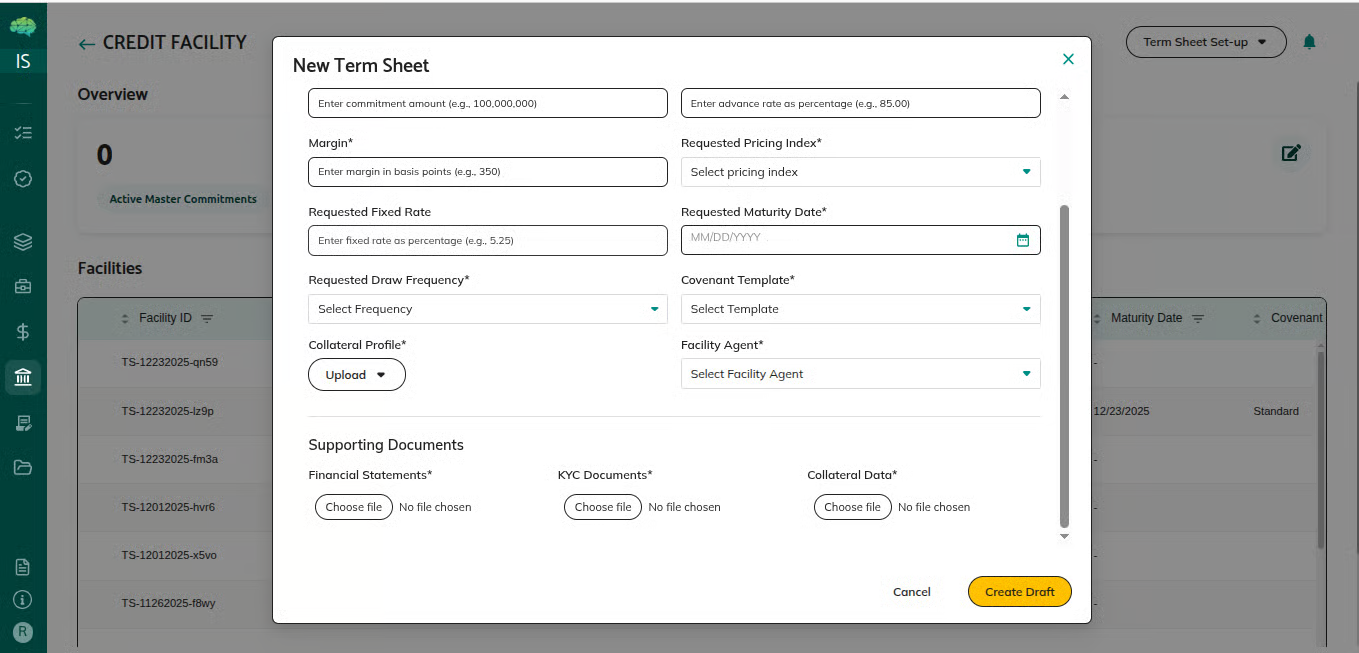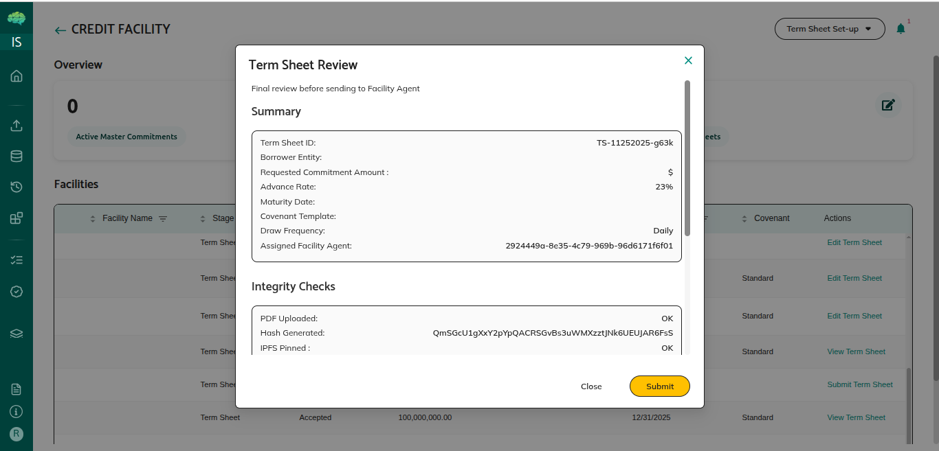 • Facility agent reviews the updated term sheet