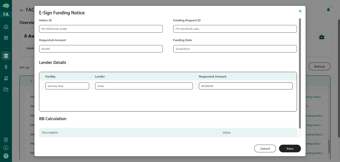 Per-Lender E-Sign - Facility agent signs separately for each lender on funding notices.